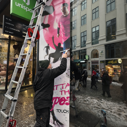 Foliemontering er en effektiv og prisvenlig måde at skabe synlig firmareklame eller dekorative løsninger i det offentlige rum.